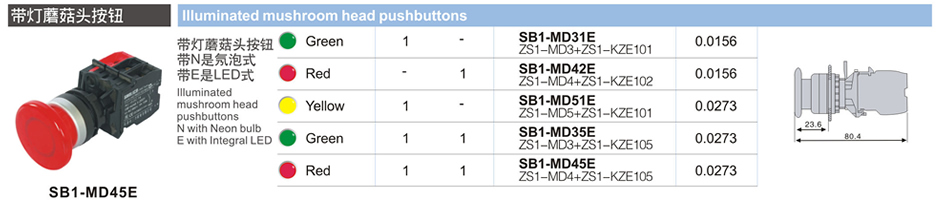帶燈蘑菇頭按鈕