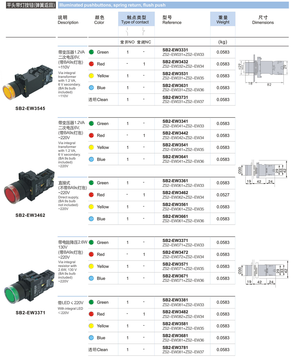 平頭帶燈按鈕(彈簧返回)
