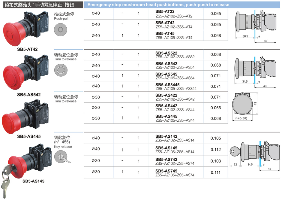 鎖扣式蘑菇頭"手動(dòng)緊急停止"按鈕