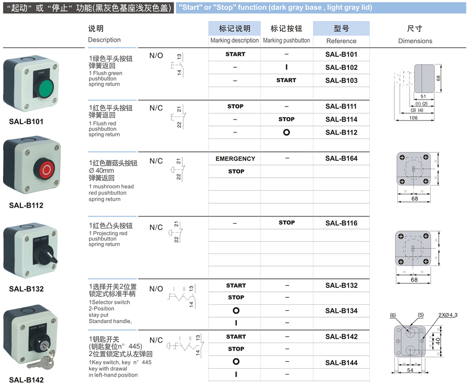 專業(yè)生產(chǎn)按鈕開關(guān)及指示燈、行程開關(guān)、微動開關(guān)、小型限動開關(guān)、腳踏開關(guān)、熔斷器底座單元、按鈕盒系列、機械閥系列、按鈕指示燈附件等產(chǎn)品。